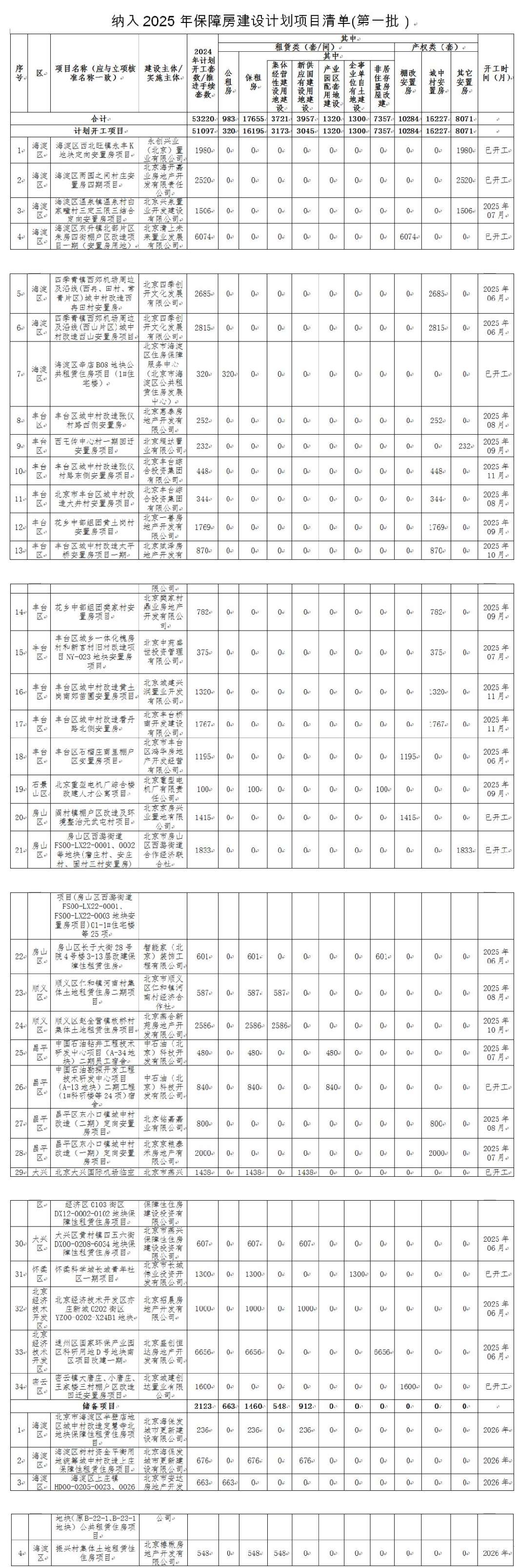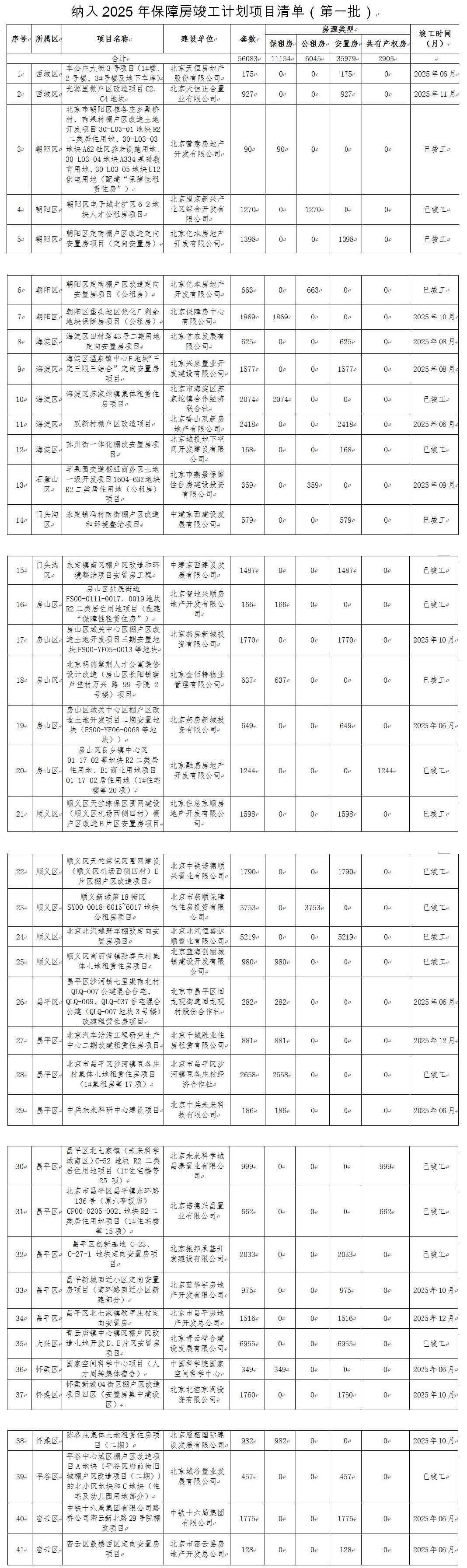 (2025年保障房竣工计划项目清单(第一批),图源:北京市住建委)