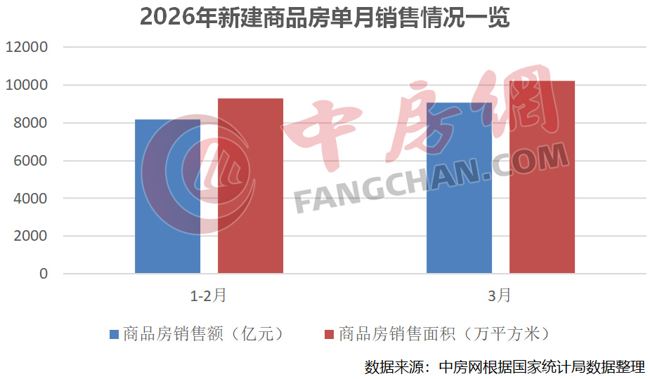 从单月情况来看,根据国家统计局数据测算,3月新建商品房销售面积10232万方米,环比增长10.10%,同比下降8.01%;新建商品房销售额9076亿元,环比增长10.87%,同比下降13.88%。